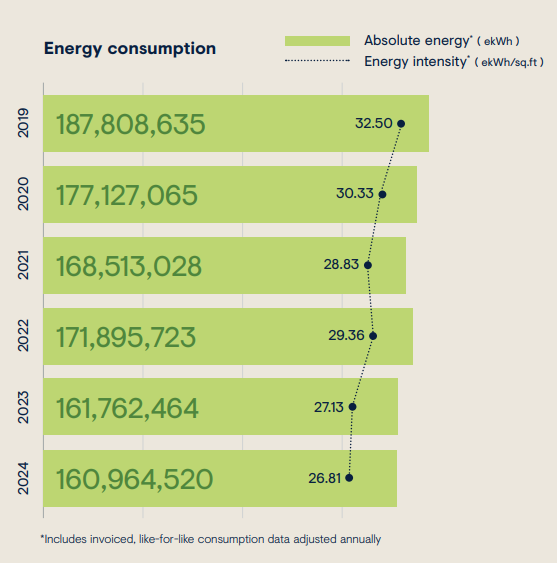 IF-RE-130a.3 Energy Management | 2023 to 2024 Like-for-like percentage change in energy consumption: -0.5%. |