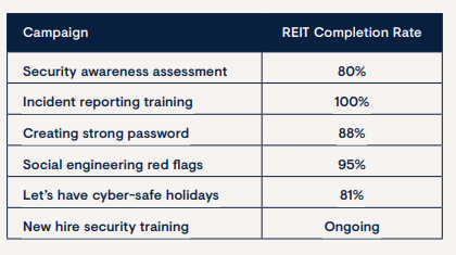 - Updated and tested operational Business Continuity Plans for all functional areas of the REIT, covering critical activities with a maximum tolerable disruption period of two weeks.